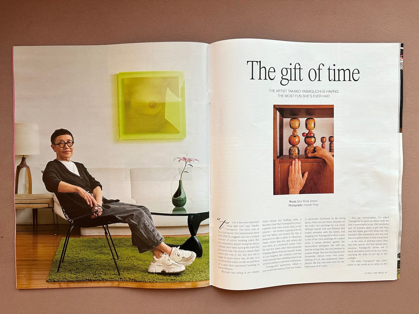 Time is a gift. This was my deceptively simple takeaway from my recent conversation with the artist Takako Yamaguchi, who at 72 is finally getting institutional recognition for her arresting paintings, which range from multicolored seascapes to closeup portraits of busts and hips. I spent a few hours with Yamaguchi at her Santa Monica apartment where she graciously opened up about her life, about how she feels like she doesn’t belong to any one place, even though she’s lived here for the better part of 47 years. I related to her fascination with oceans, her love for second-hand clothes, and her hesitation to acquire furniture. Maybe it’s just a coincidence that we share these impulses and proclivities, but I was left wondering if they’re part of some lexicon among people who’ve long abandoned the idea of home.